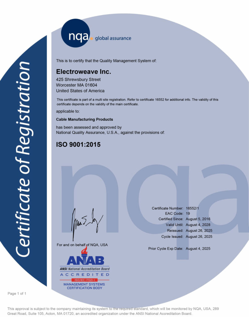 Manufacturing the finest, most reliable custom woven and round cable since 1969.